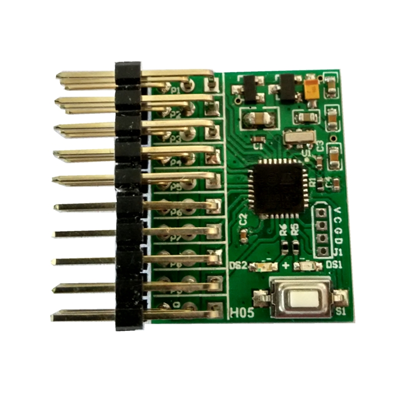 3. When the 9CH pin input S.BUS signal, 1-8CH pin output PWM, 10CH pin output PPM signal, blue LED flashes three times per cycle.