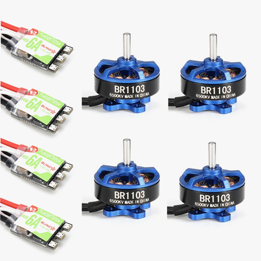 4X Racerstar Racing Edition 1103 BR1103 6500KV 1-2S Brushless Motor Dark Blue + 4X RS6A V2 BB2 Blheli_S 6A 1-2S Brushless ESC D-shot