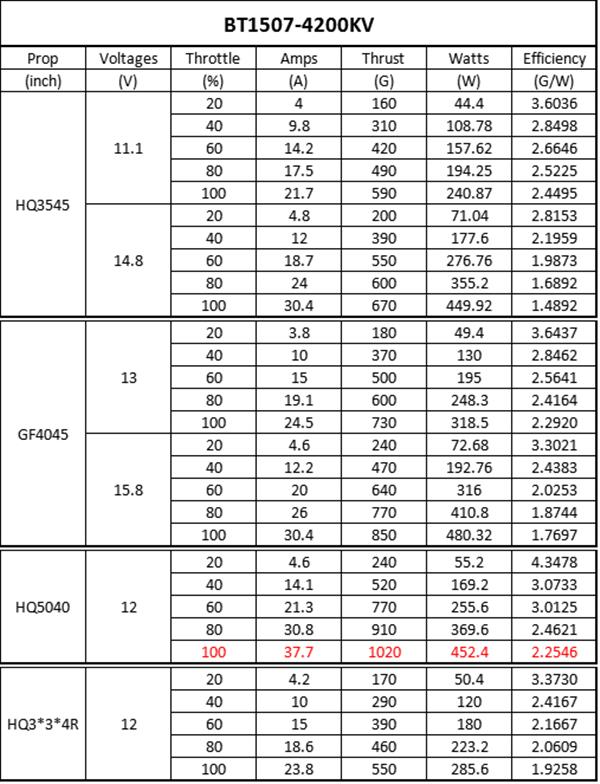 - Motor KV: 1200KV