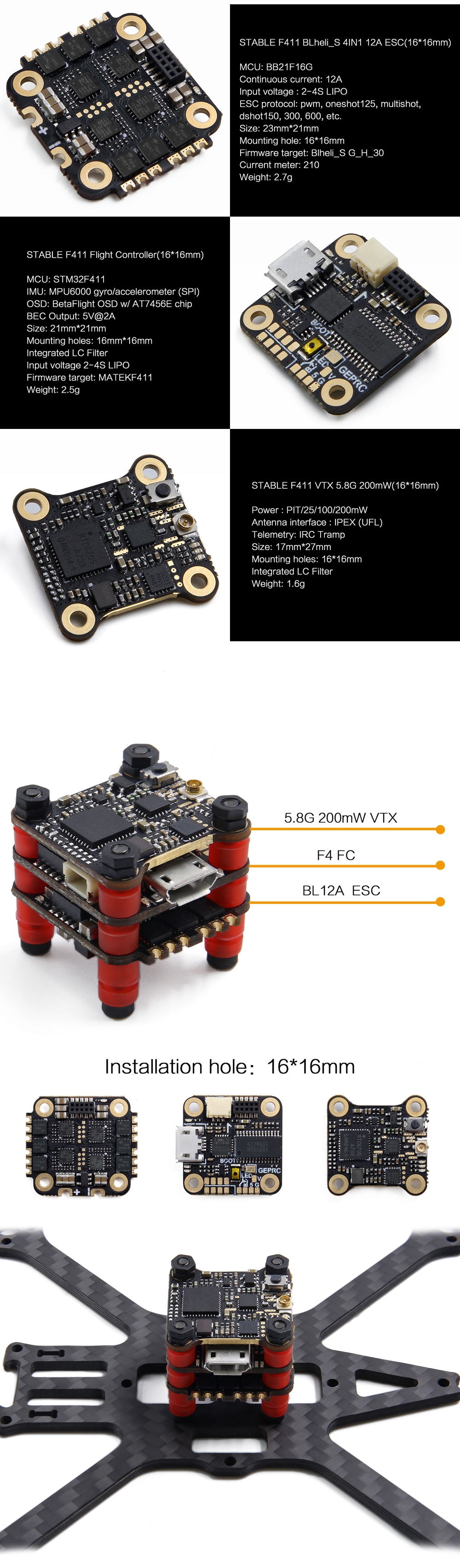 - Mounting hole: 16*16mm