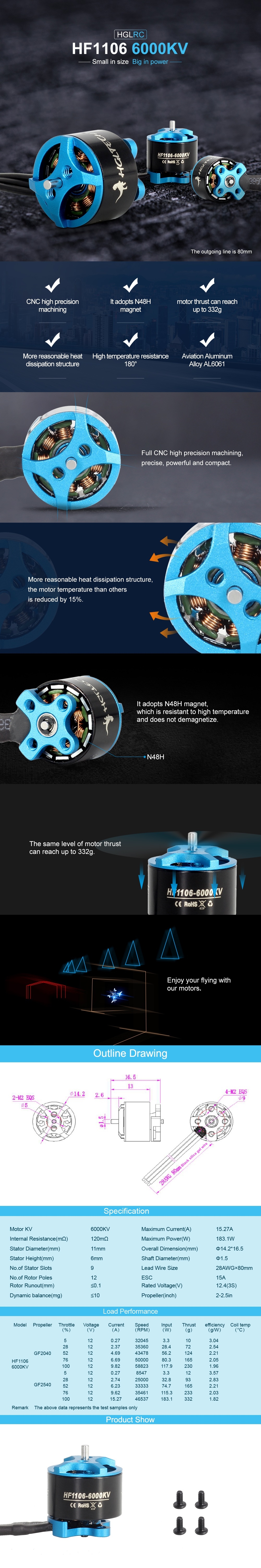 Item name: FLAME HF1106 6000KV Brushless Motor