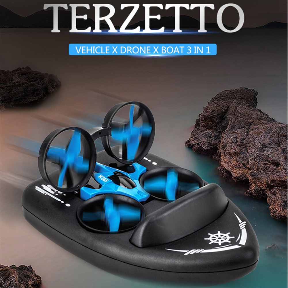 | Transmitter | Frequency: 2.4G Channel: 4CH Remote Distance: 30m in the flying place 15m in the water 15m in the ground Battery:2X AA(not included) | Battery | Vehicle Battery:2X(3.7V 150mAh) Li-ion battery(included) One Battery Charging Time:About 60 minutes One Battery Using Time: Flying Mode:About 5-6 minutes Land Mode:About 4 minutes Water Mode:About 4.5 minutes |