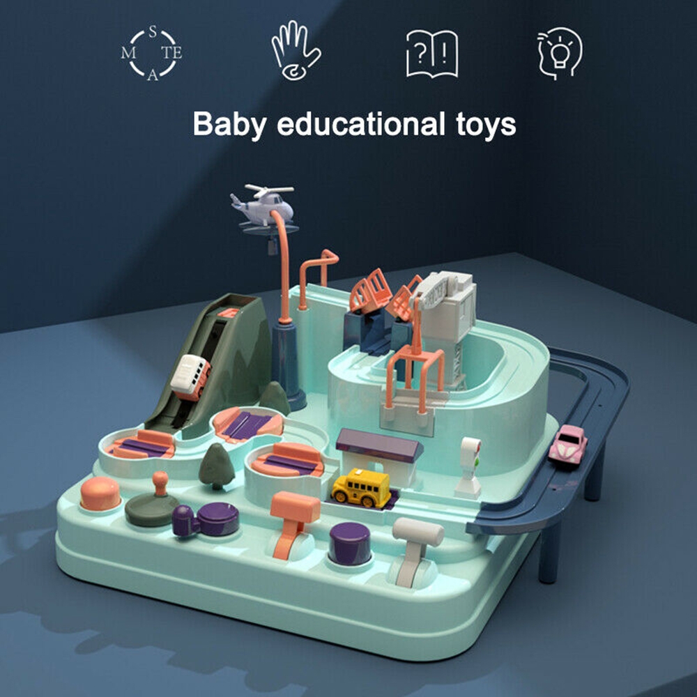 -- Car Toys Manipulative Rescue Squad Adventure Train Track Set with 3 small cars
