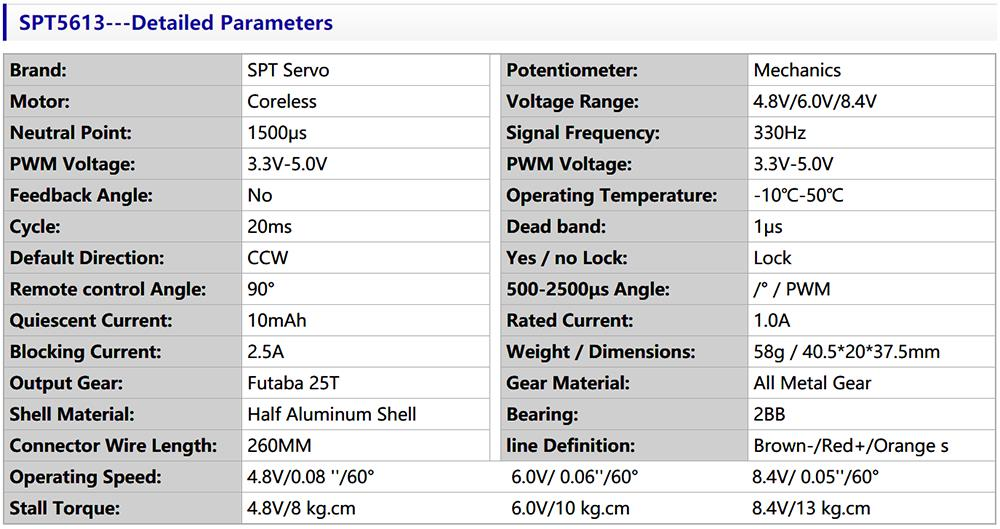 1* SPT5613 Digital Servo
