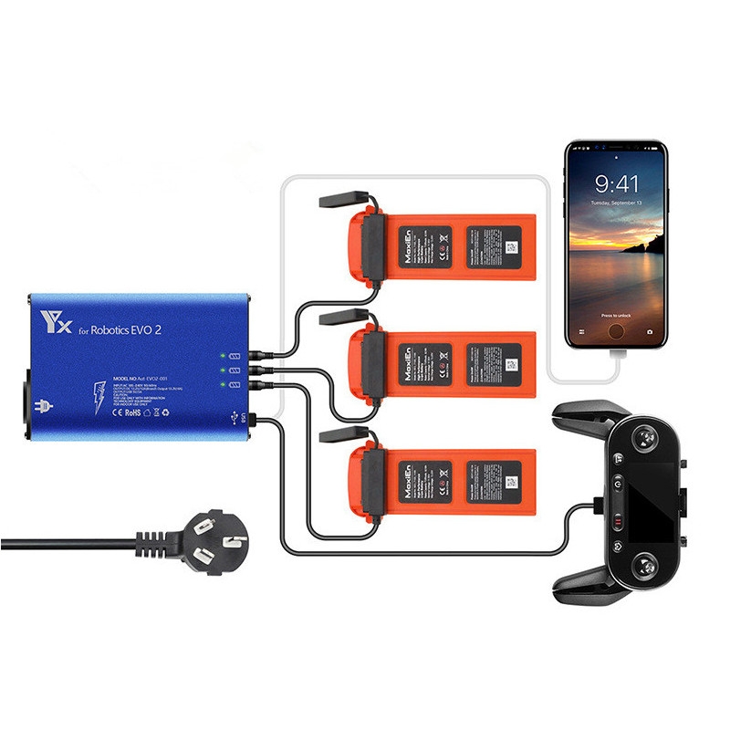 YX 5 IN 1 Multi Charging Hub Intelligent Battery Remote Control Phone Charger for Autel Robotics EVO 2/ EVO 2 Pro/EVO 2 Dual RC Quadcopter